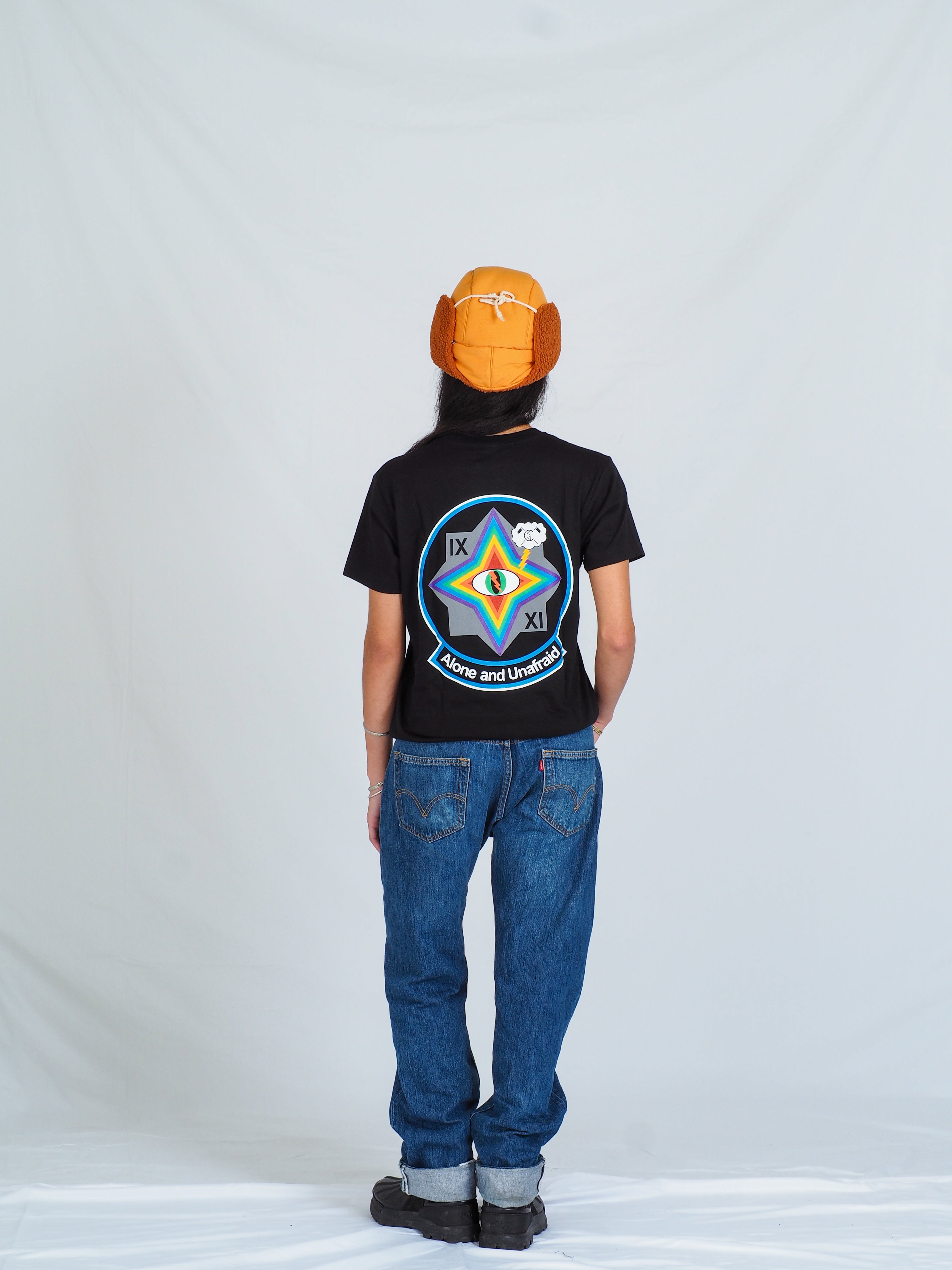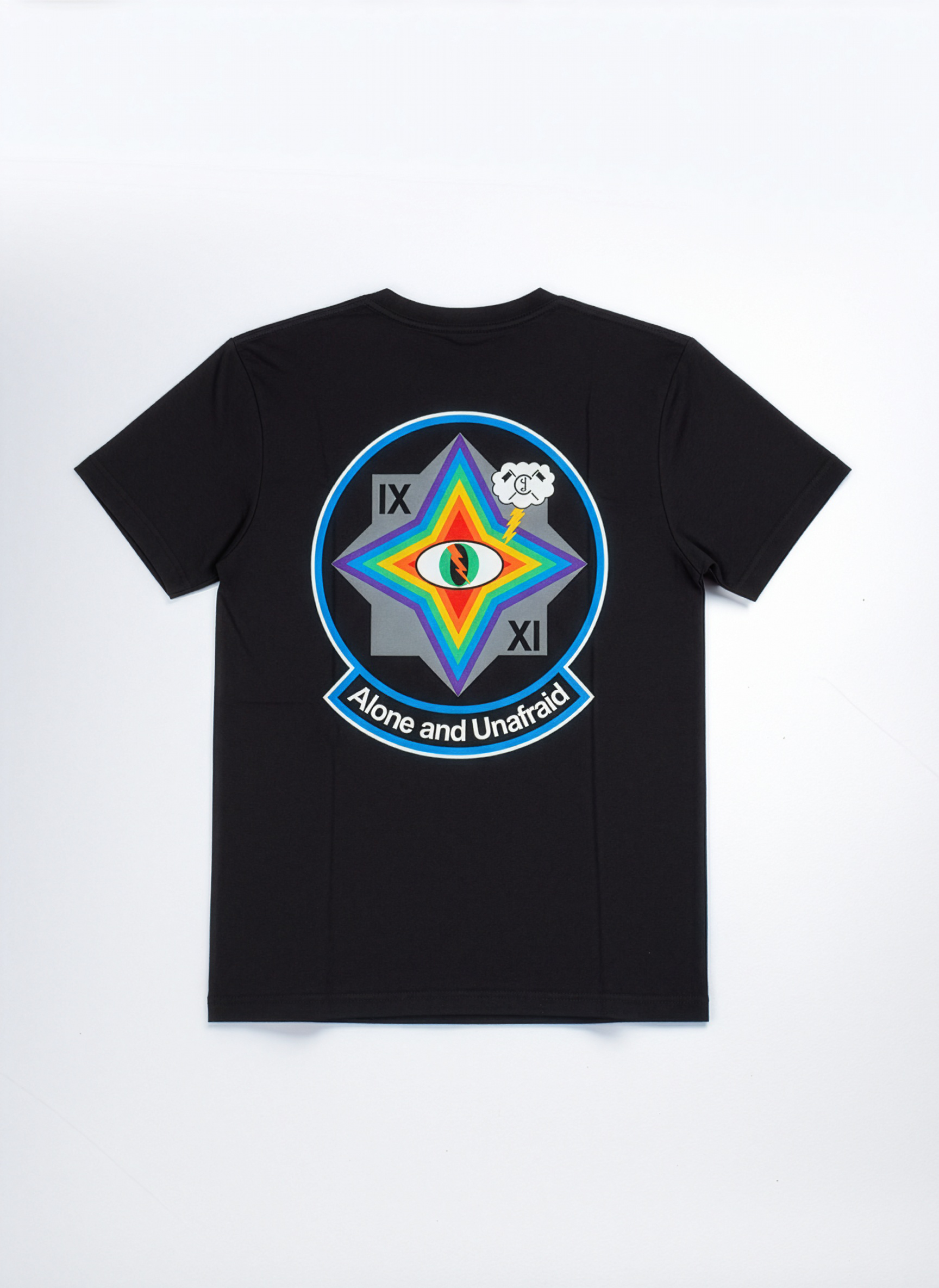 The Champelli “Alone and Unafraid” Tee channels inner resilience through a bold, multicolor emblem centered around an all-seeing eye motif. Radiating layers of color and anchored by Roman numerals, the design reflects clarity, self-reliance, and the strength found in moving through the world with unwavering purpose.