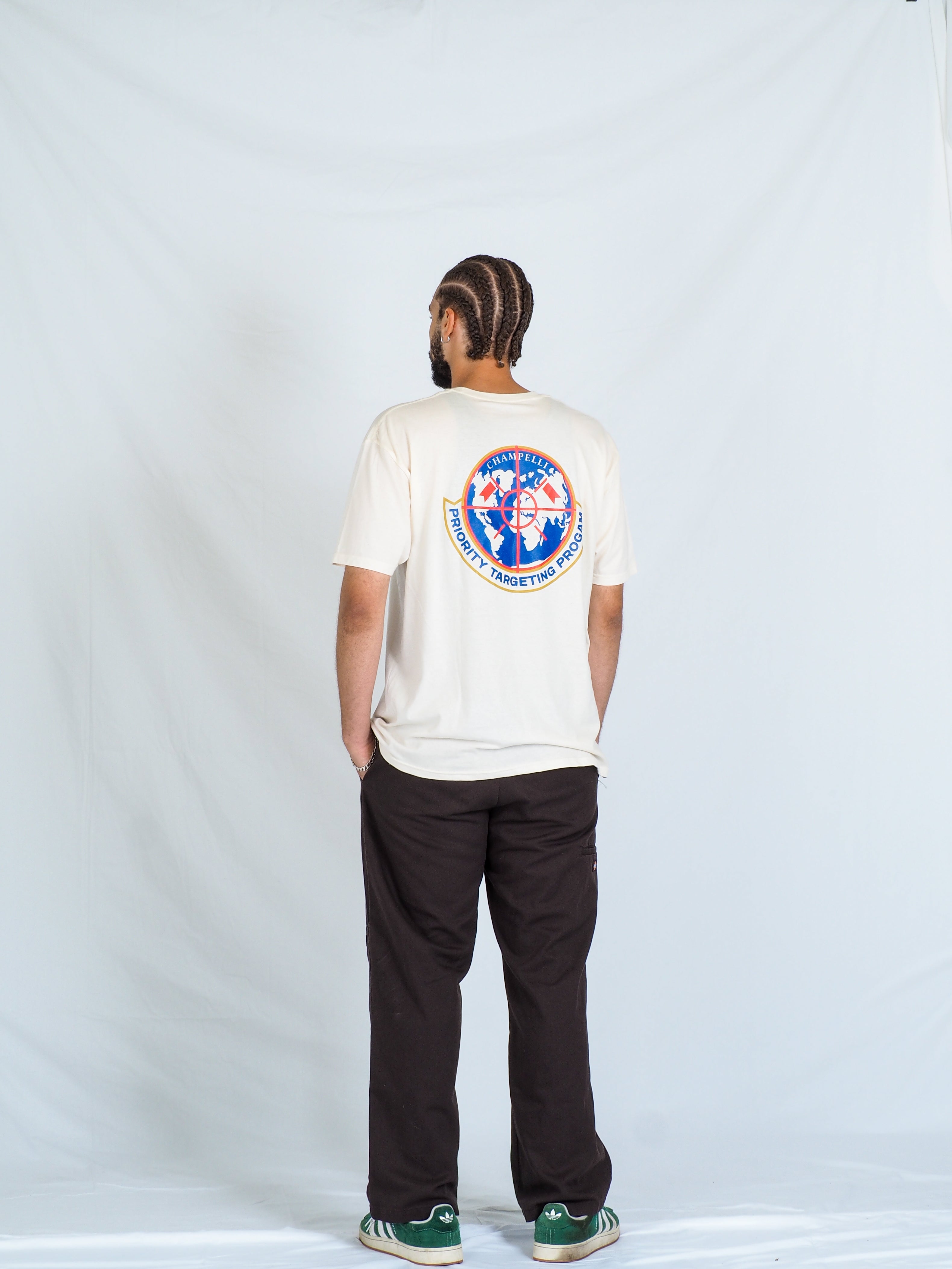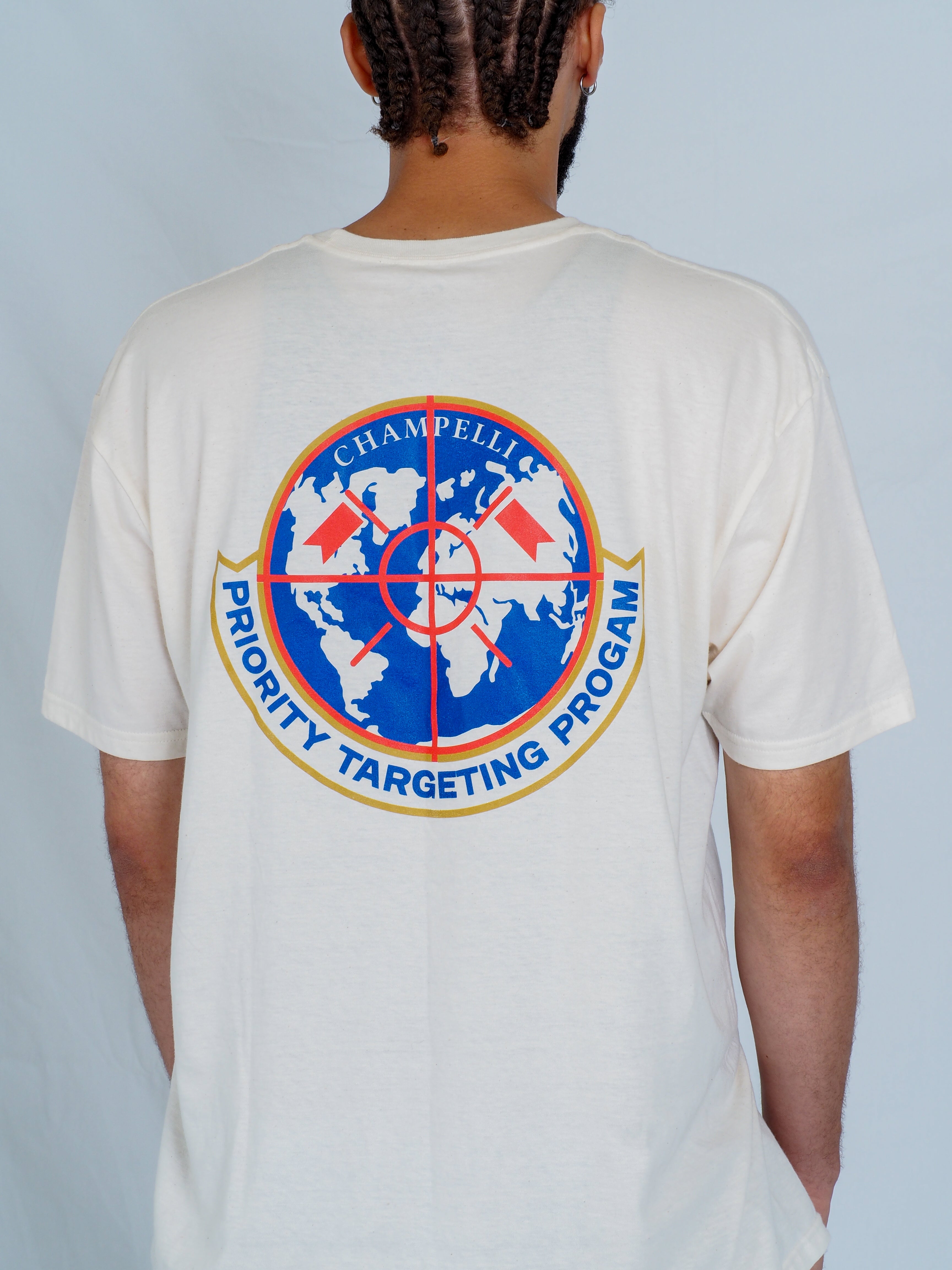 The Champelli Priority Targeting Program Tee brings a refined edge to global-inspired streetwear. Featuring a world-map emblem intersected by a precise target graphic, the design speaks to clarity, direction, and intentional movement.